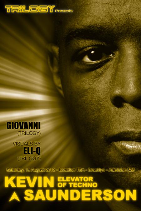 Kevin Saunderson will play live at a secret location in New York City on Aug. 18th, 2012. This is a Trilogy productions.