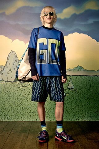 Marc by Marc Jacobs introduces the new spring/summer 2015 collection, culture clashing between the great outdoors, grunge and west coast surf. In your face prints and patterns decorate suits, trousers, shorts, sweaters and tank tops, while loose, oversize jeans are all incorporate into the new look.